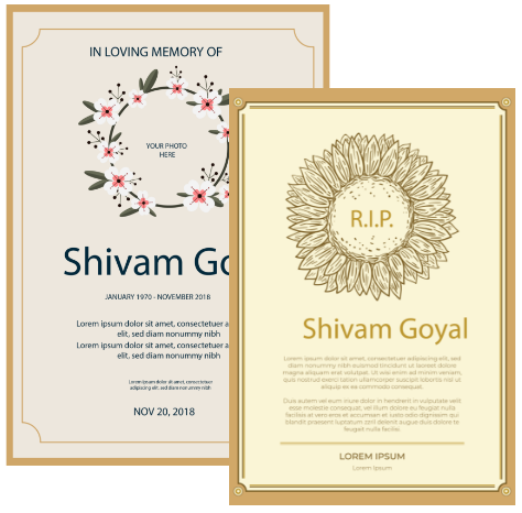 We have more options like Classified display advertisement (width is retracted in 3 cm and height is minimum 5 cm and maximum is your choice till 52 cms) and we do display advertisement no restriction in width (minimum 4 cm x 4 cm and maximum any thinks as you like or as per your need. in both sections (Obituary/ Death Anniversary, Condolence, Baithak/Antim Ardas or Remembrance advertisement etc. Sample design in right site display. We are working with all leading newspaper like Times of India, Hindustan Times, Amar Ujala, Danik Jagra, Hindustan Hindi, Navbhart Times and any national newspaper of India.